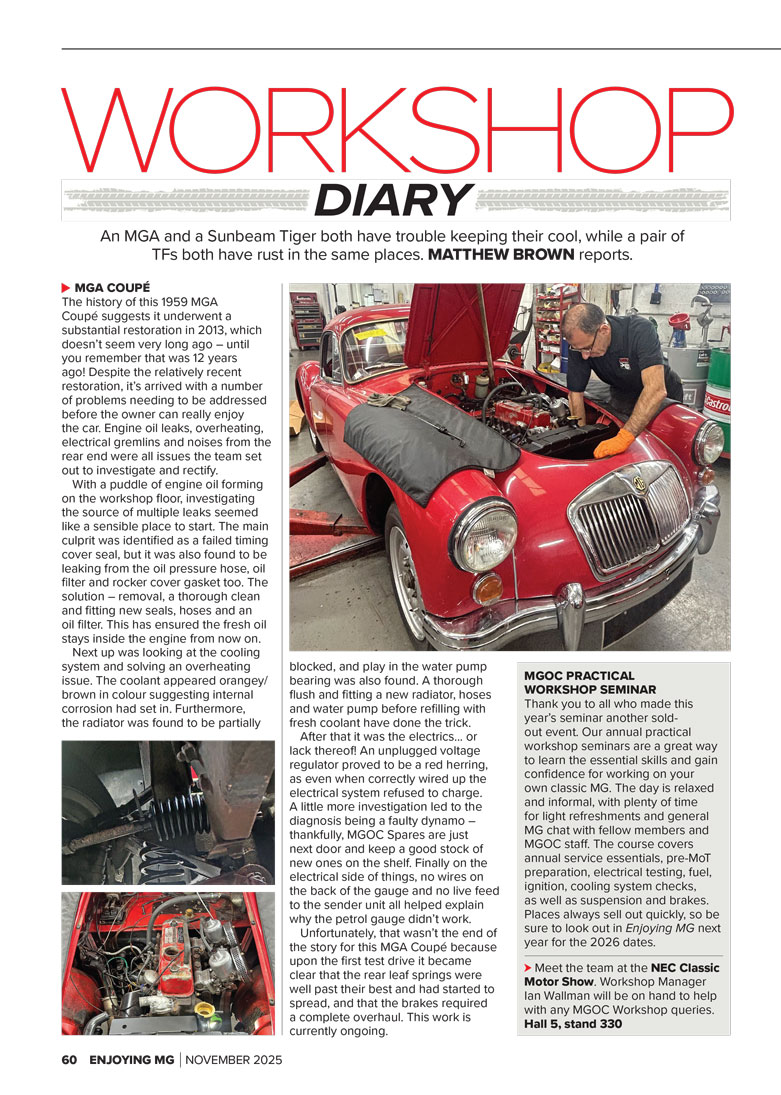 MGOC WORKSHOP DIARY NOV 2025